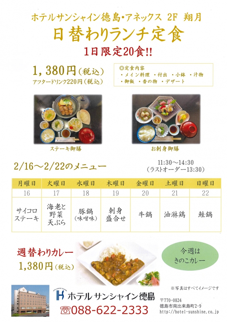 【翔月】日替わりランチメニュー(2/16~2/22)
