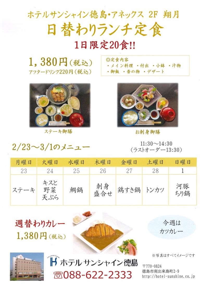 【翔月】日替わりランチメニュー(2/23~3/1)