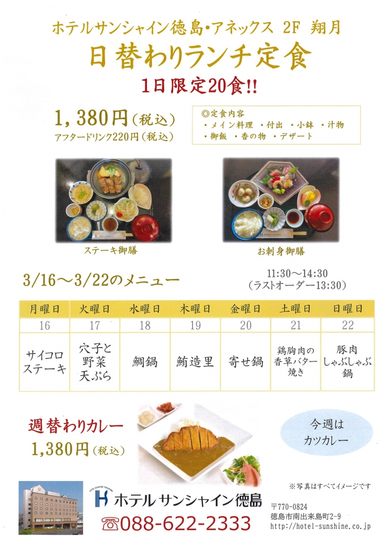 【翔月】日替わりランチメニュー(3/16~3/22)